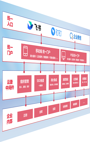 对协作平台提供支持服务,,,支持企业应用与协作平台对接,,包含组织同步、、、、消息集成、、、、待办集成等。。支持目前主流的协作平台:钉钉、、、企微和飞书。。。